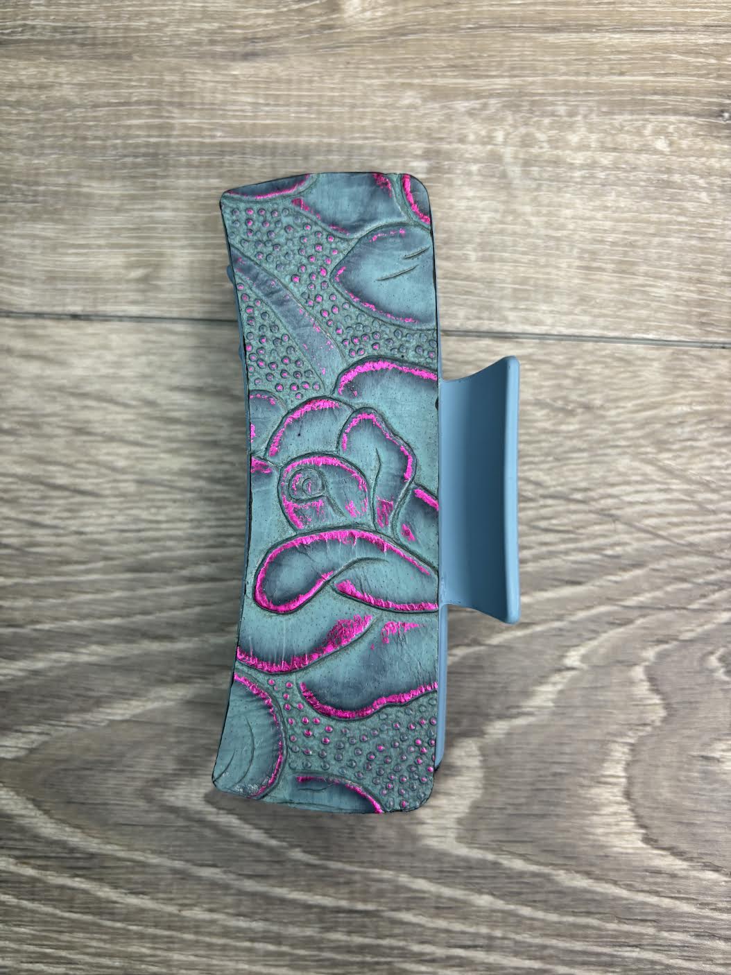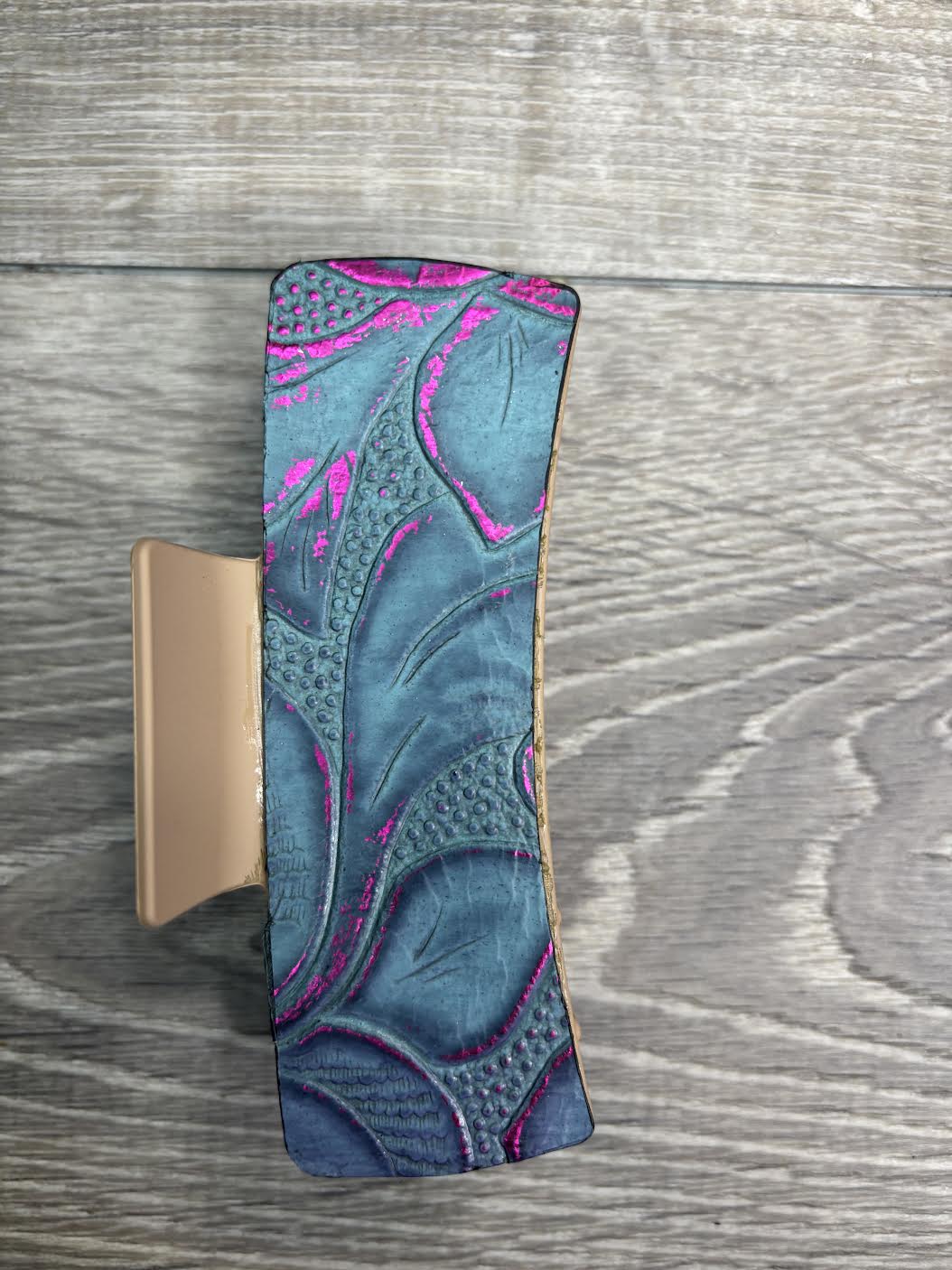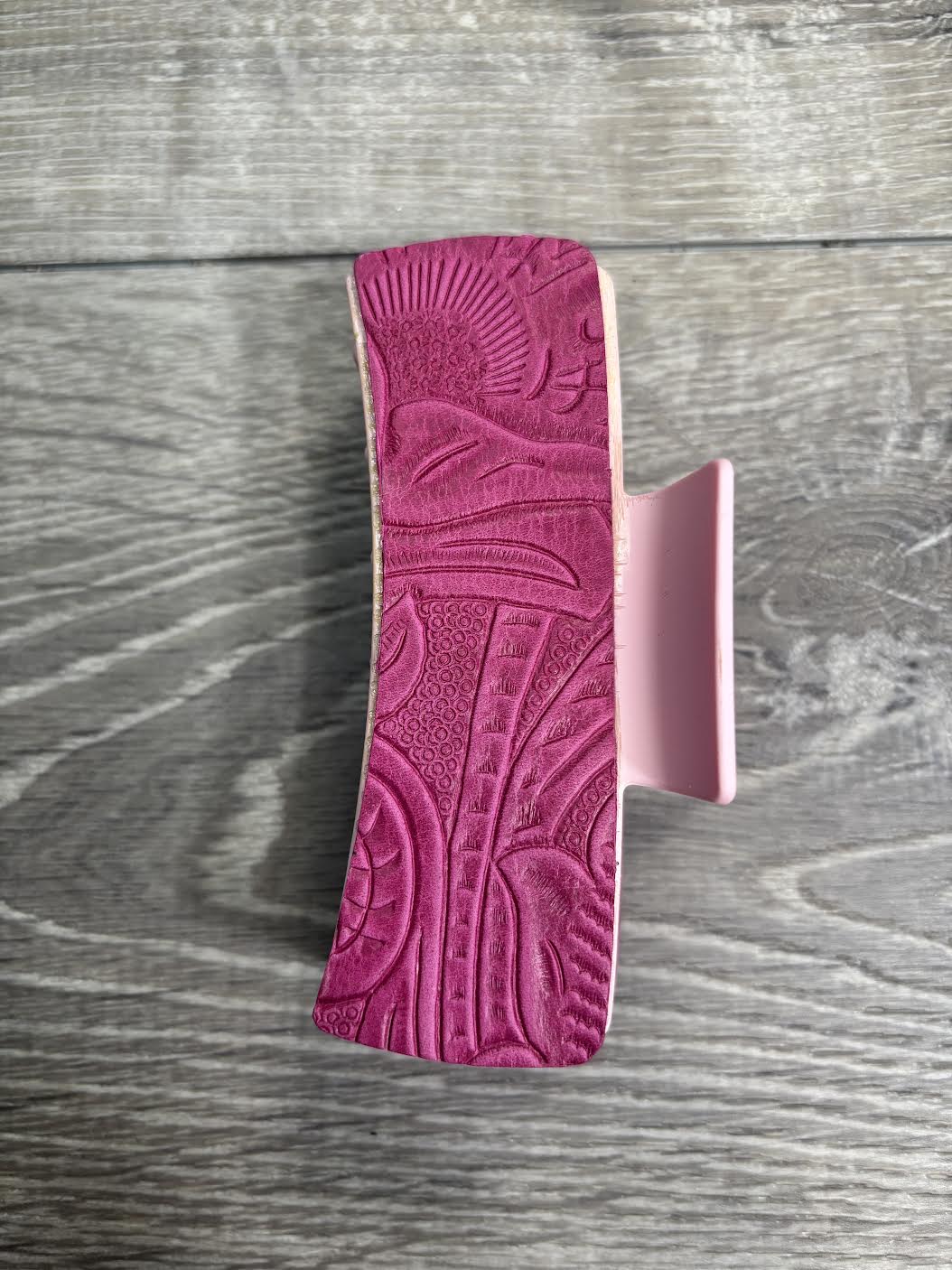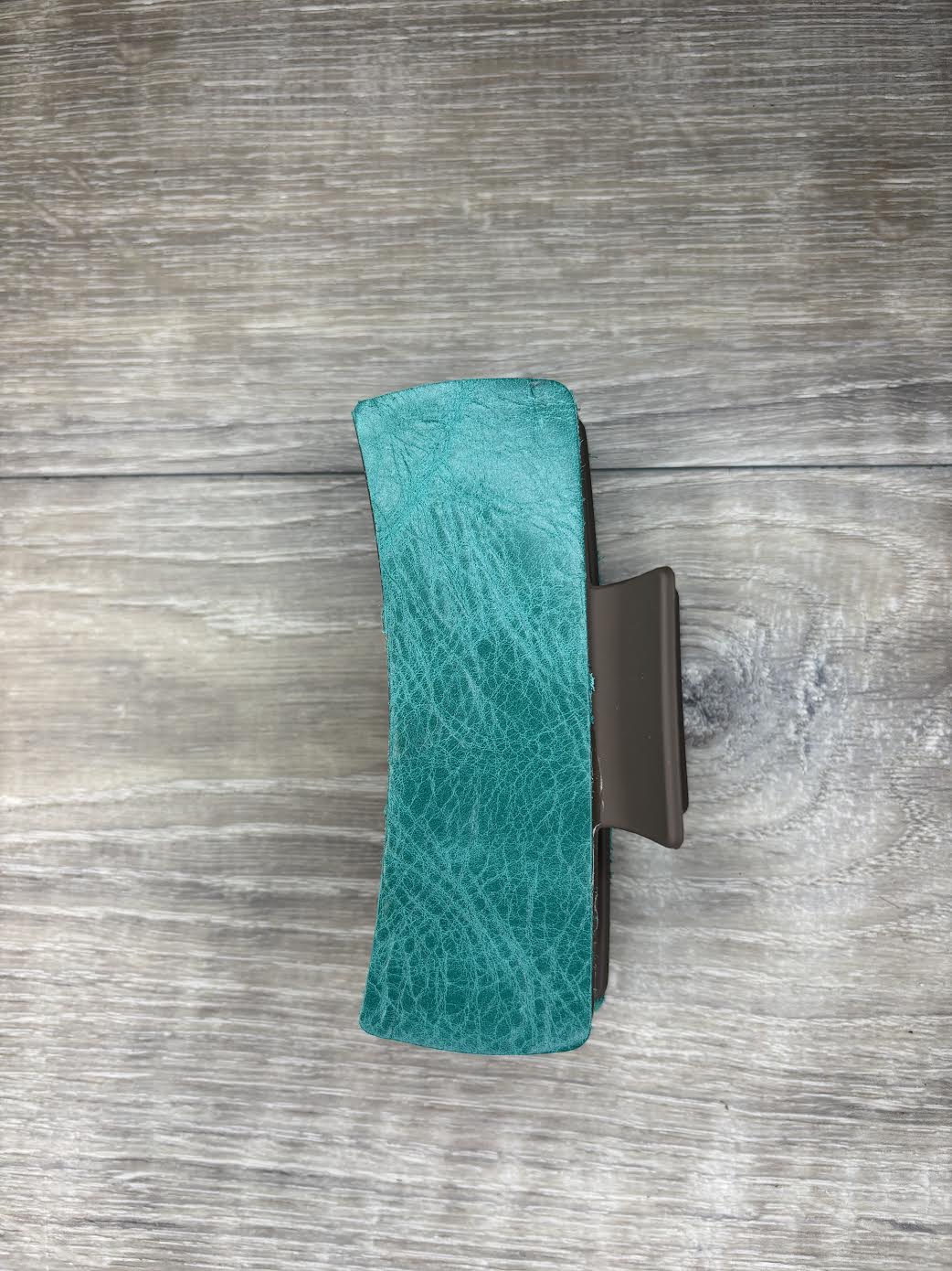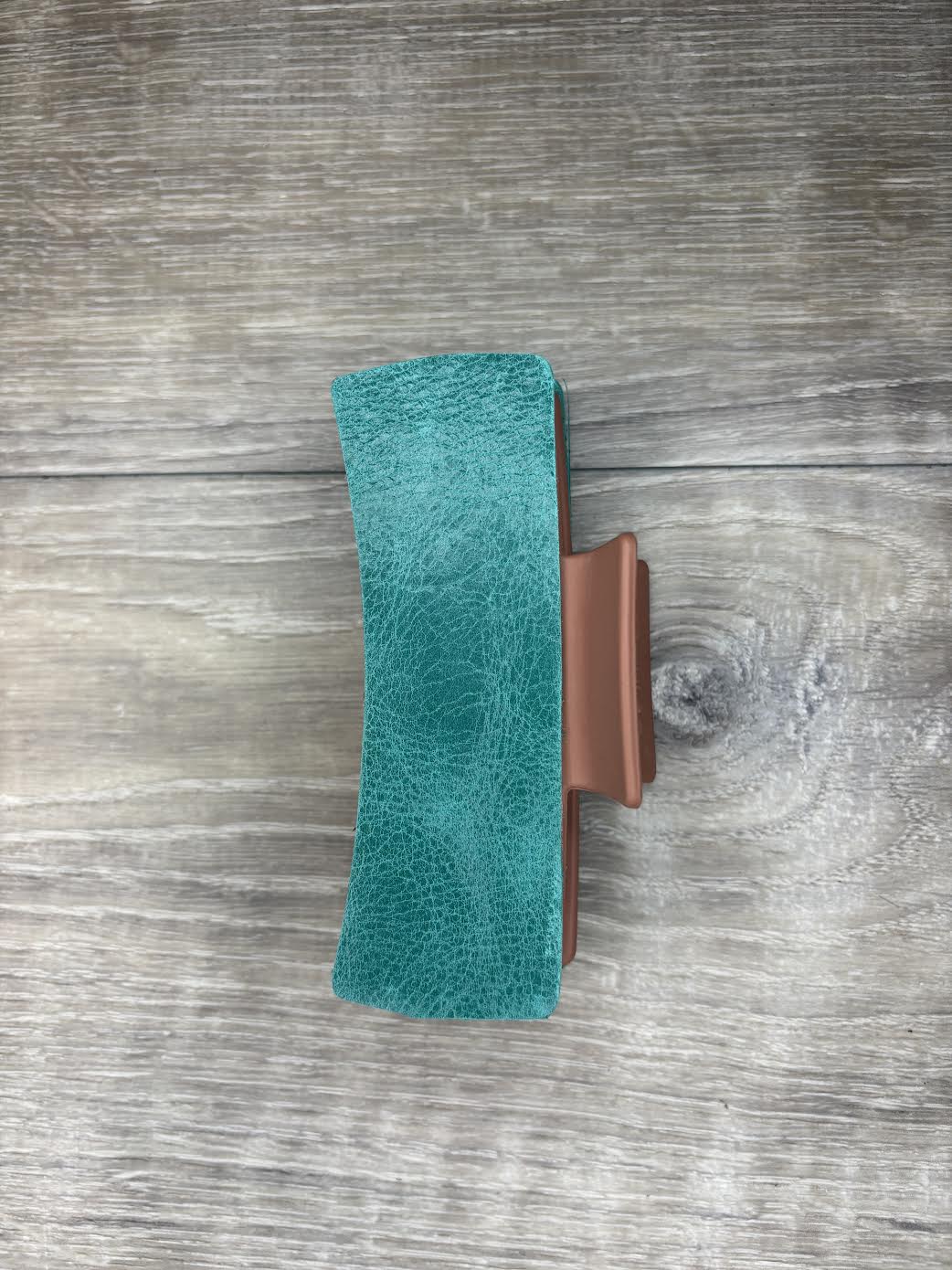 4.2" leather accented claw clips are a perfect way to get your hair up while adding a pop of color.