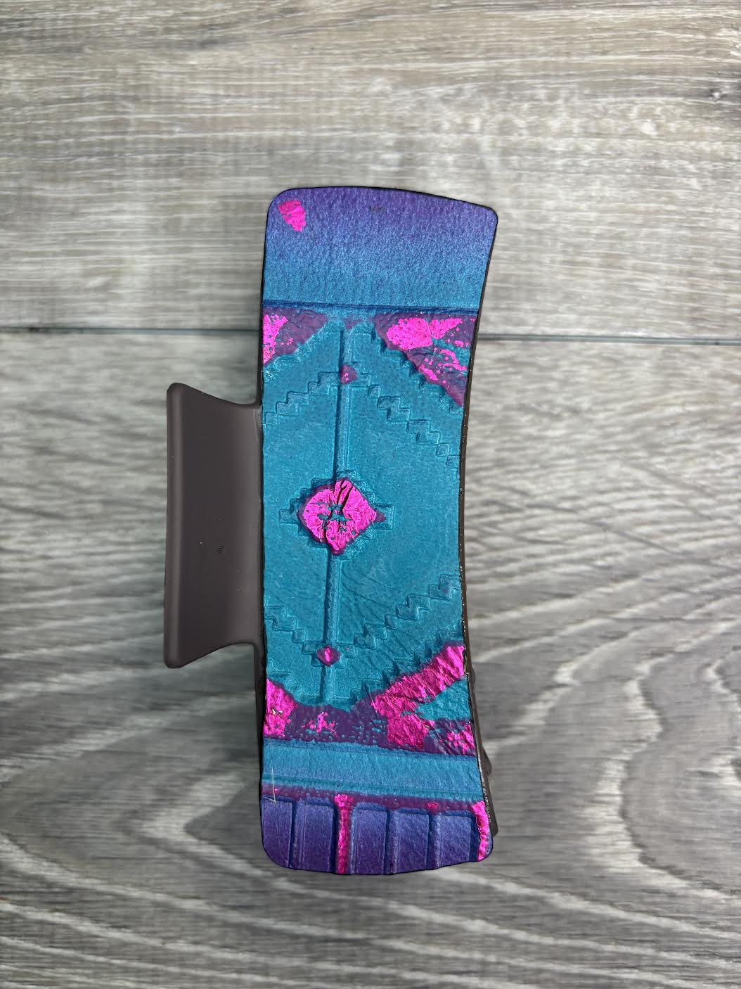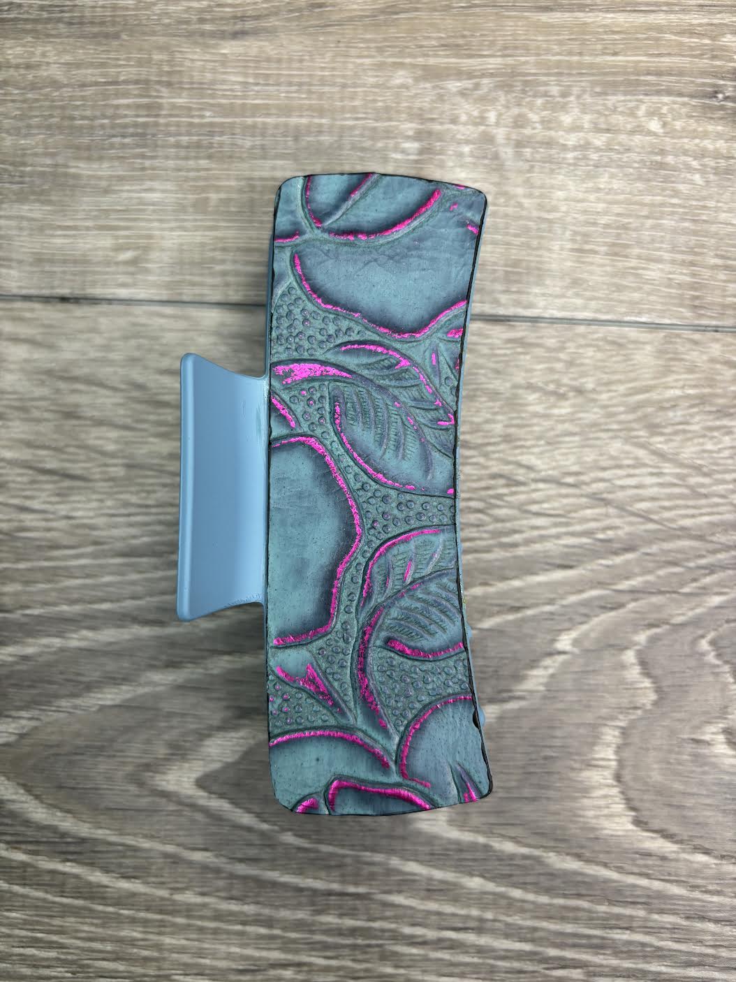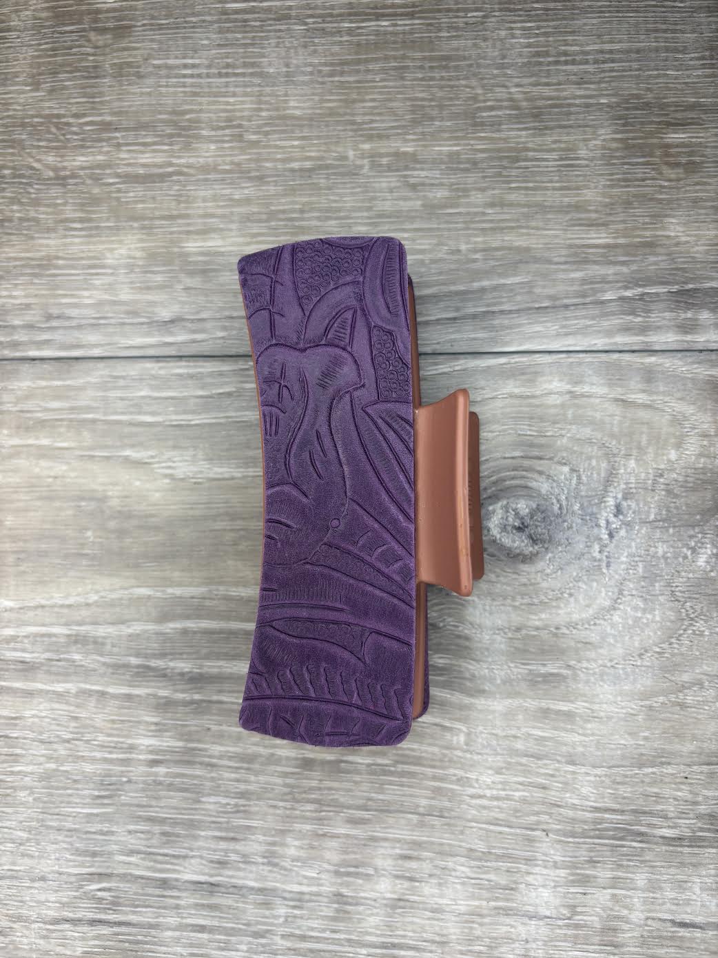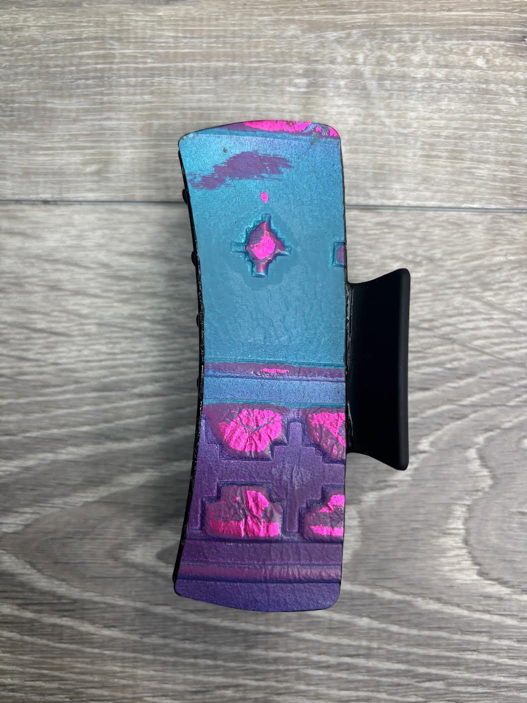 4.2" leather accented claw clips are a perfect way to get your hair up while adding a pop of color.