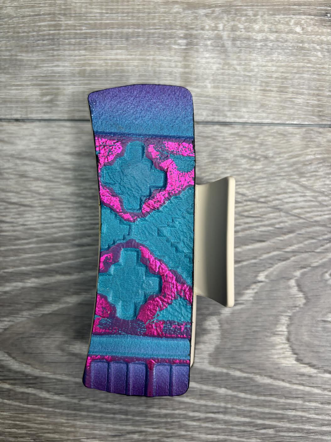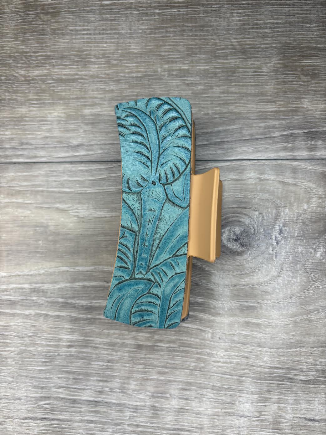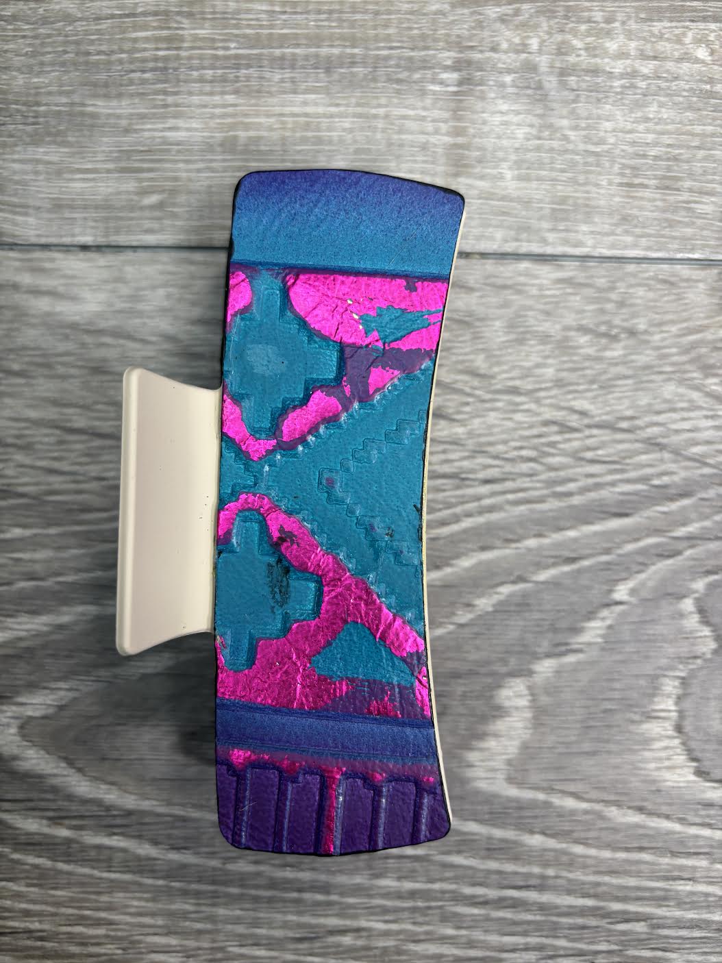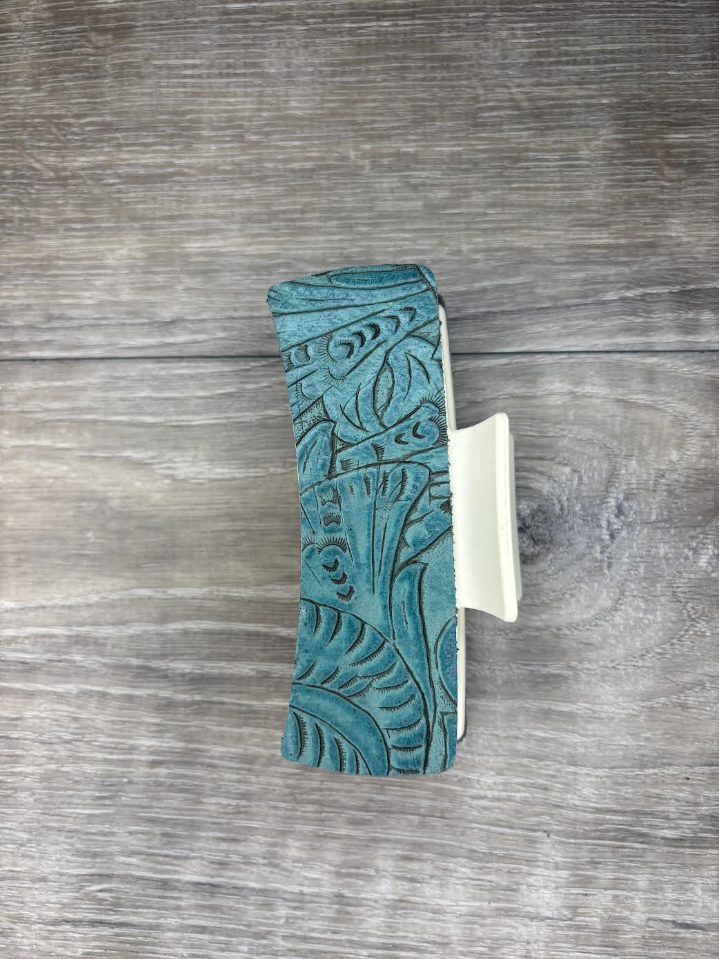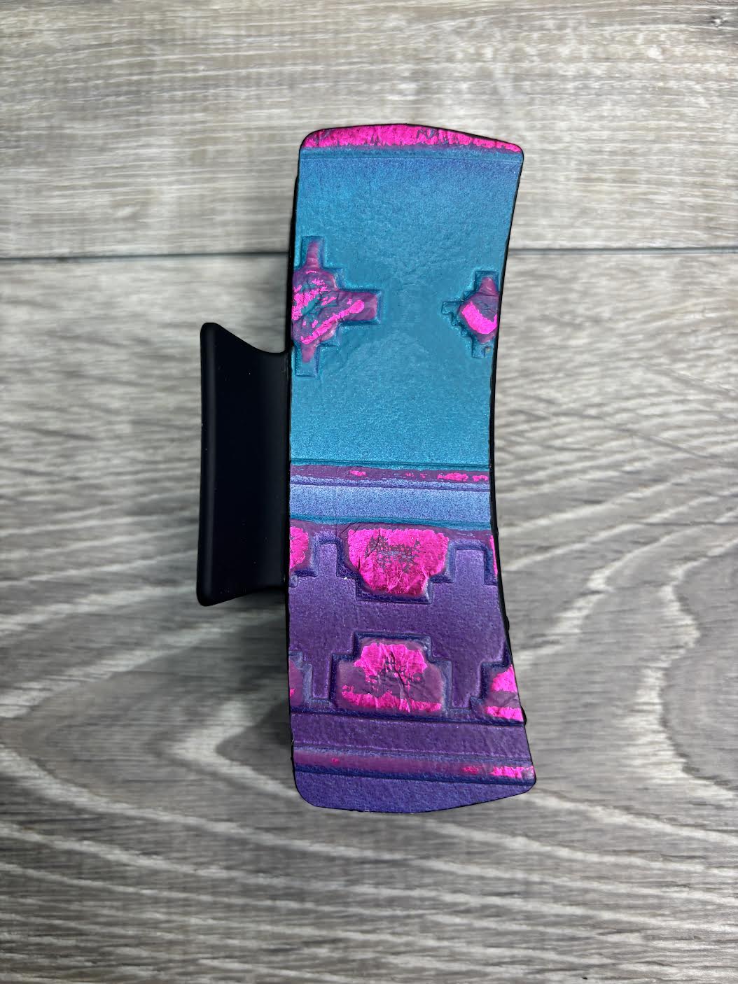 4.2" leather accented claw clips are a perfect way to get your hair up while adding a pop of color.