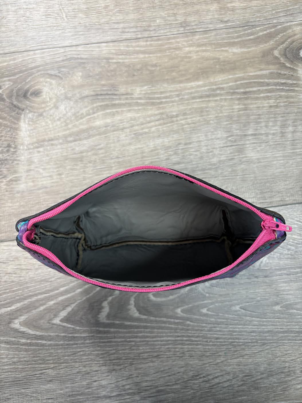 The perfect bag to keep you organized! This bag is designed for your makeup or other essentials. Convenient zipper top with vinyl interior for easy cleaning.
