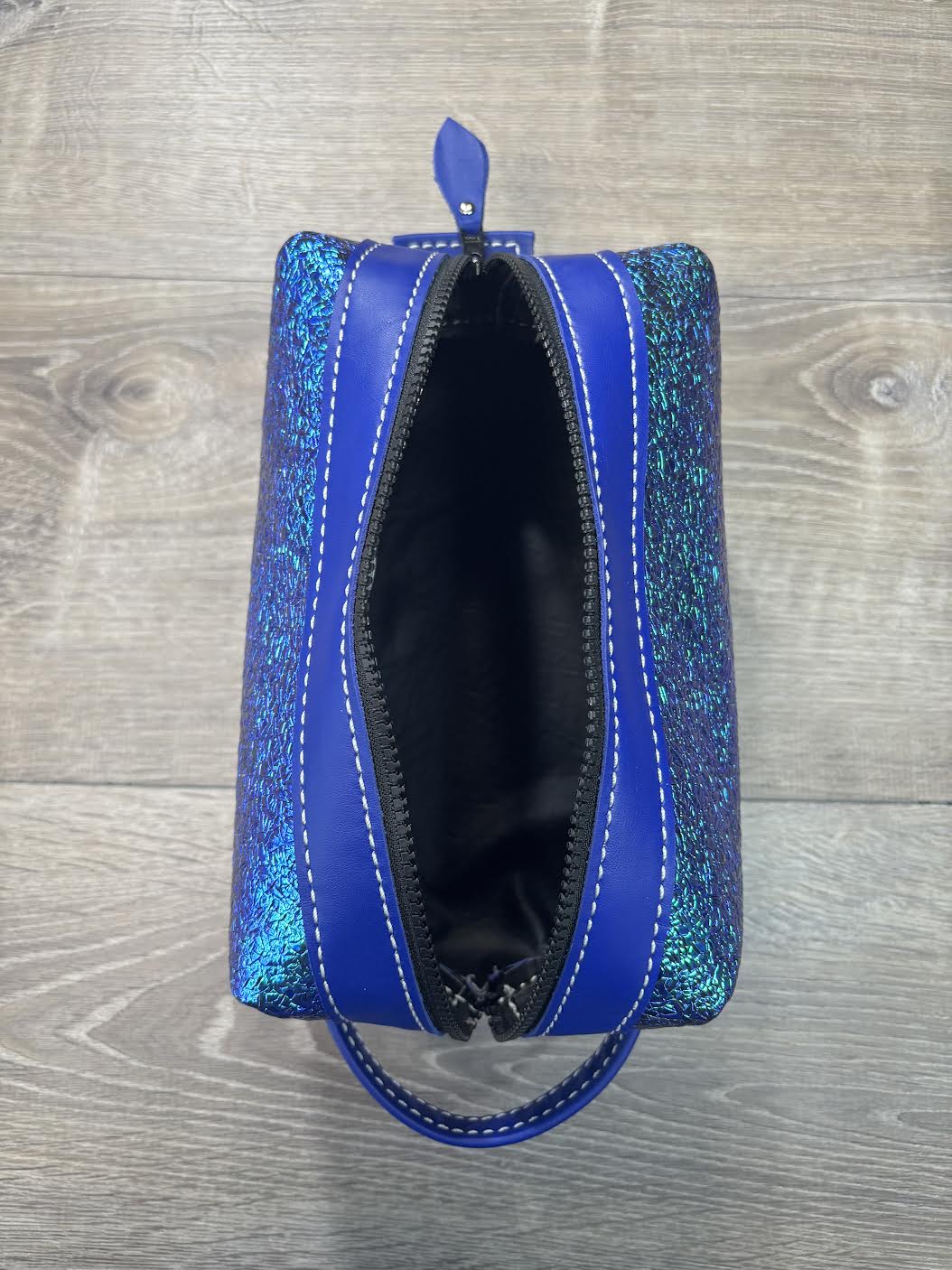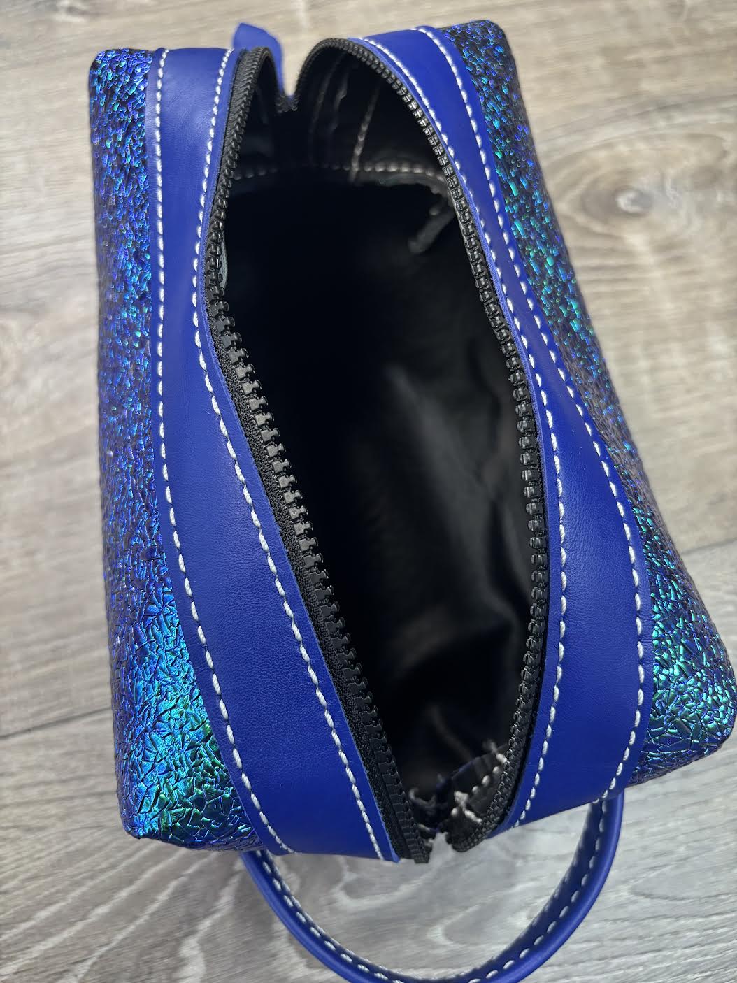 The perfect grab and go travel essential! This bag is designed for your makeup, toiletries, and more. Convenient zipper top with vinyl interior for easy cleaning.